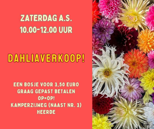 Goed nieuws! Dit jaar kunnen we weer dahliaknollen verkopen. Dus kom op zaterdag 10 mei naar onze tuin en koop ook je eigen set!